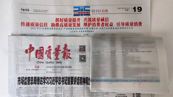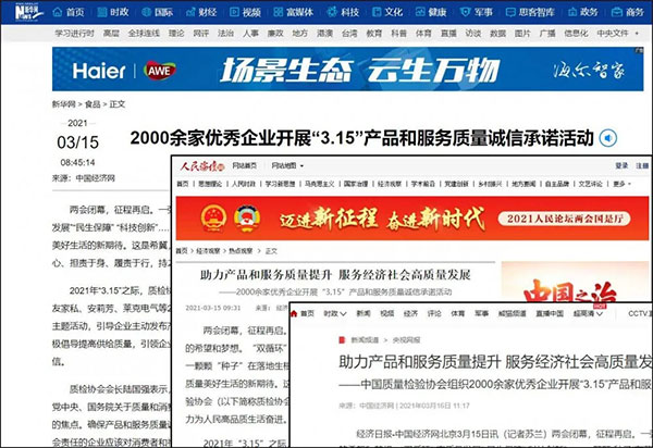 《中國(guó)質(zhì)量報(bào)》、《中國(guó)消費(fèi)者報(bào)》、中國(guó)經(jīng)濟(jì)網(wǎng)、中國(guó)質(zhì)量網(wǎng)、中國(guó)消費(fèi)網(wǎng)等多家權(quán)威媒體均予以集中展示和公告。不僅如此,公司還獲得了“全國(guó)質(zhì)量誠(chéng)信先進(jìn)企業(yè)”的榮譽(yù)稱號(hào),這是需要經(jīng)過中檢協(xié)長(zhǎng)達(dá)三年的全方位監(jiān)督檢查合格才能獲得的榮譽(yù)稱號(hào),其含金量可見一斑!