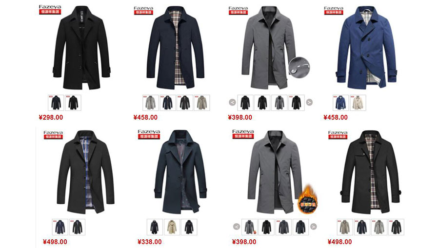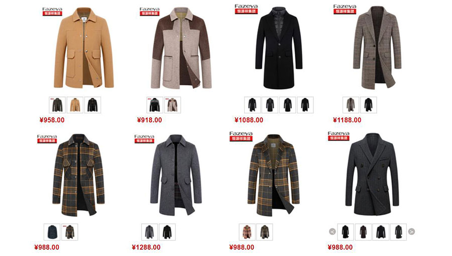 主要產品:Fazeya西服、夾克、褲子、襯衫、內衣