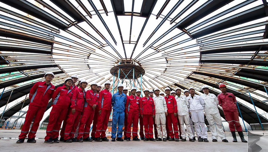 海洋石油工程股份有限公司現有員工近8000人,形成了全方位、多層次、寬領域的適應工程總承包的專業團隊;擁有國際一流的資質水平,建立了與國際接軌的運作程序和管理標準。海洋石油工程股份的總體設計水平已與世界先進的設計水平接軌;在天津塘沽、山東青島、廣東珠海等地擁有大型海洋工程制造基地,場地總面積近350萬平方米,形成了跨越南北、功能互補、覆蓋深淺水、面向全世界的場地布局,海上安裝與鋪管能力在亞洲處于領先地位。