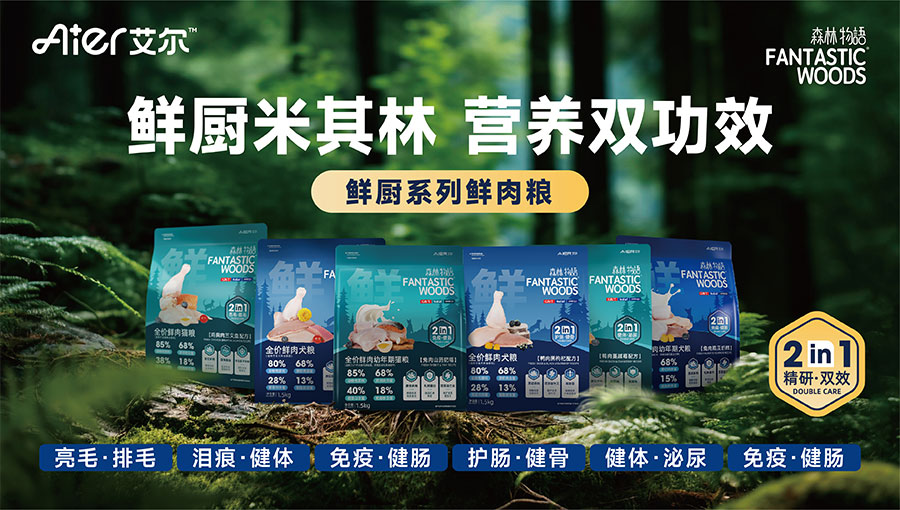 主要產(chǎn)品:艾爾森林物語鮮廚鮮肉糧,靚貝益生臻選腸道功能糧