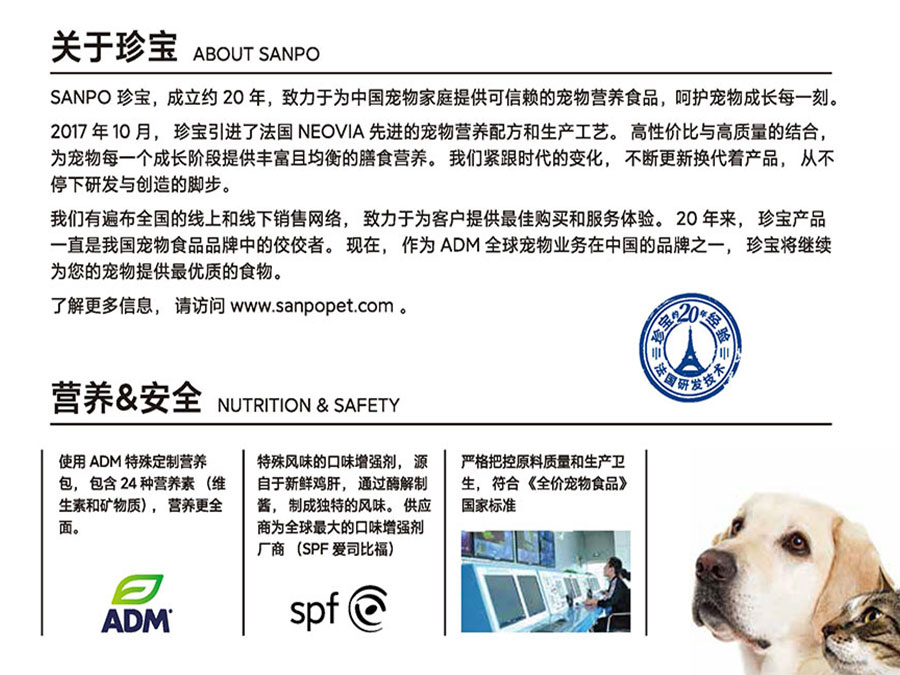 主要產品:TOTAL EQUILIBRIO?英派特?、SANPO珍寶?寵物食品