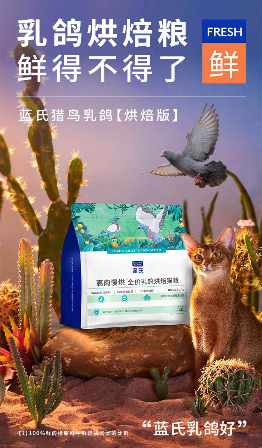 藍氏擁有強大的品牌實力,包括自主研發的配方,與國內外頂尖寵物營養師及中國農業大學等高校合作,共同研發出更適合中國貓咪的寵糧配方。甄選營養豐富的4周齡新鮮乳鴿,自有乳鴿基地直通加工廠,全程采用冷鏈運輸,確保食材新鮮。