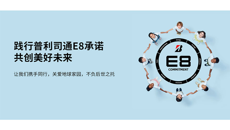 普利司通于2022年推出了面向2030年的企業承諾,即“普利司通E8承諾”。該集團承諾,“到2050年,作為一家提供可持續發展解決方案的企業,持續為社會和客戶創造價值”。普利司通E8承諾將作為驅動管理的軸心,為該公司贏得長遠的信任和信譽,“普利司通E8承諾”由8個以英文字母“E”開頭的普利司通價值取向組成(Energy、Ecology、Efficiency、Extension、Economy、Emotion、Ease、Empowerment)。該集團將致力于通過具有普利司通特色的“目的”-“過程”方法論,與員工、社會、合作伙伴和客戶攜手共創新價值,推動建設可持續發展社會。