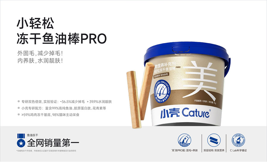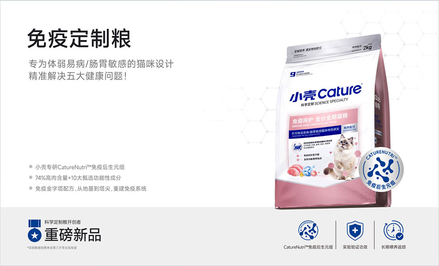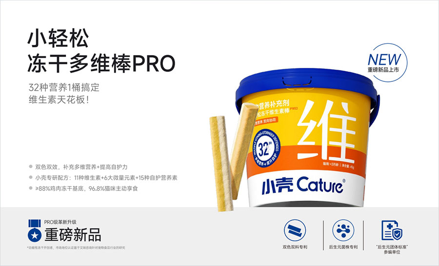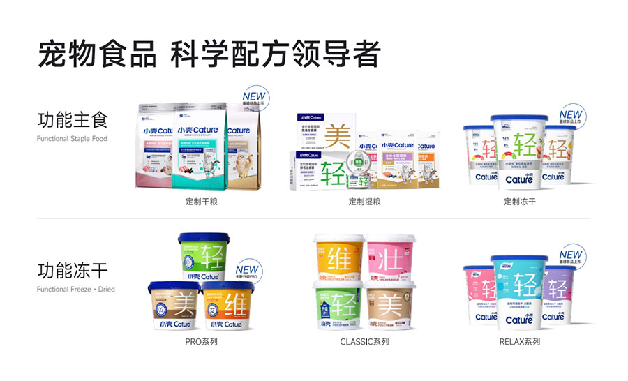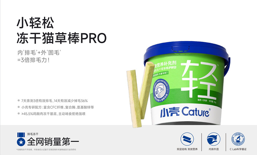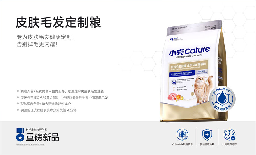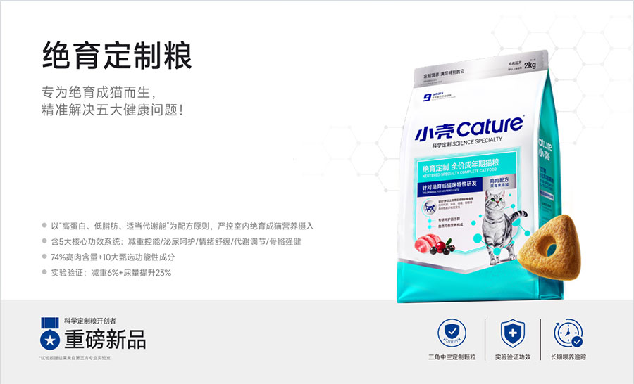 主要產(chǎn)品:小殼絕育定制糧,小殼皮膚毛發(fā)定制糧,小殼免疫呵護(hù)定制糧,小殼功能主食罐系列(小殼排毛主食罐,小殼魚油主食罐),小殼小輕松營(yíng)養(yǎng)補(bǔ)充劑系列(貓草棒pro,魚油棒pro,多維棒pro)