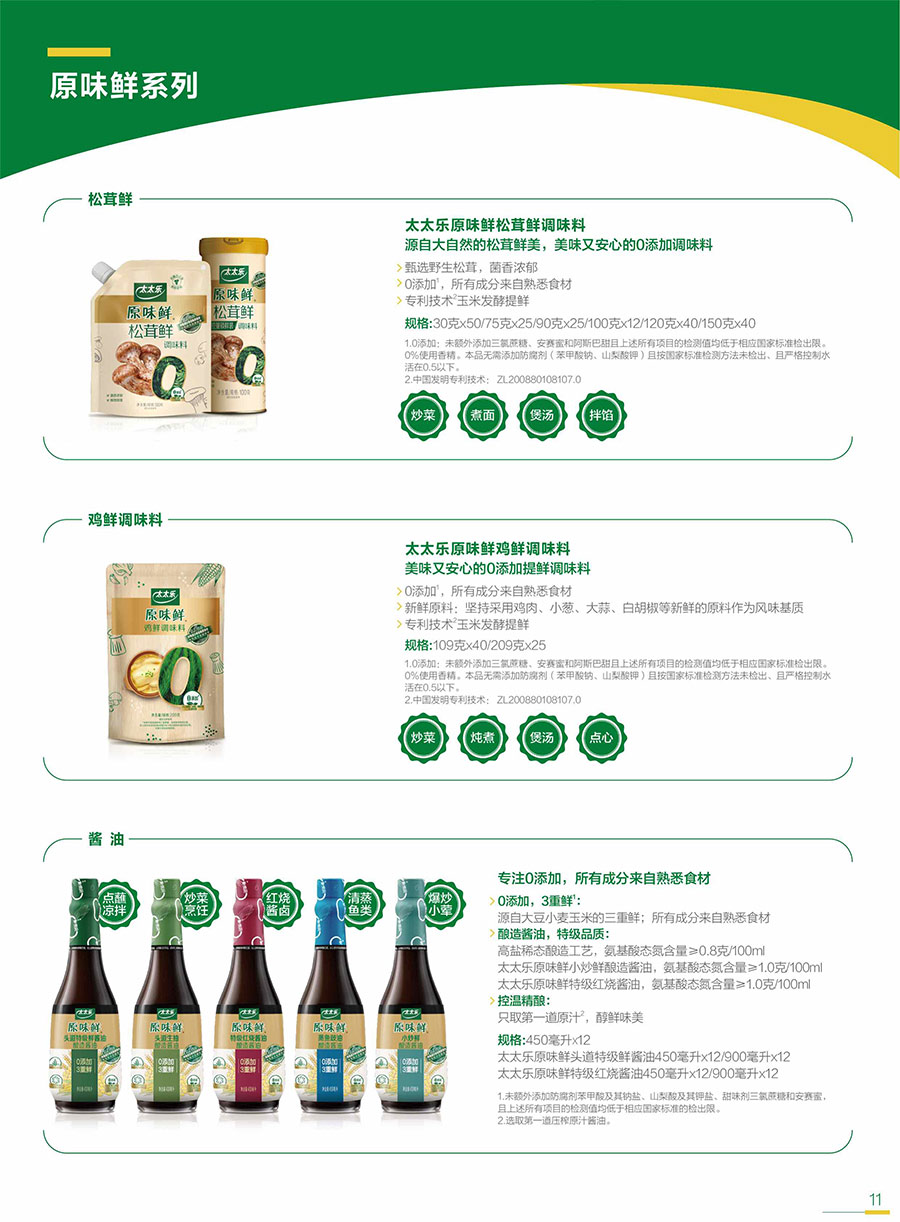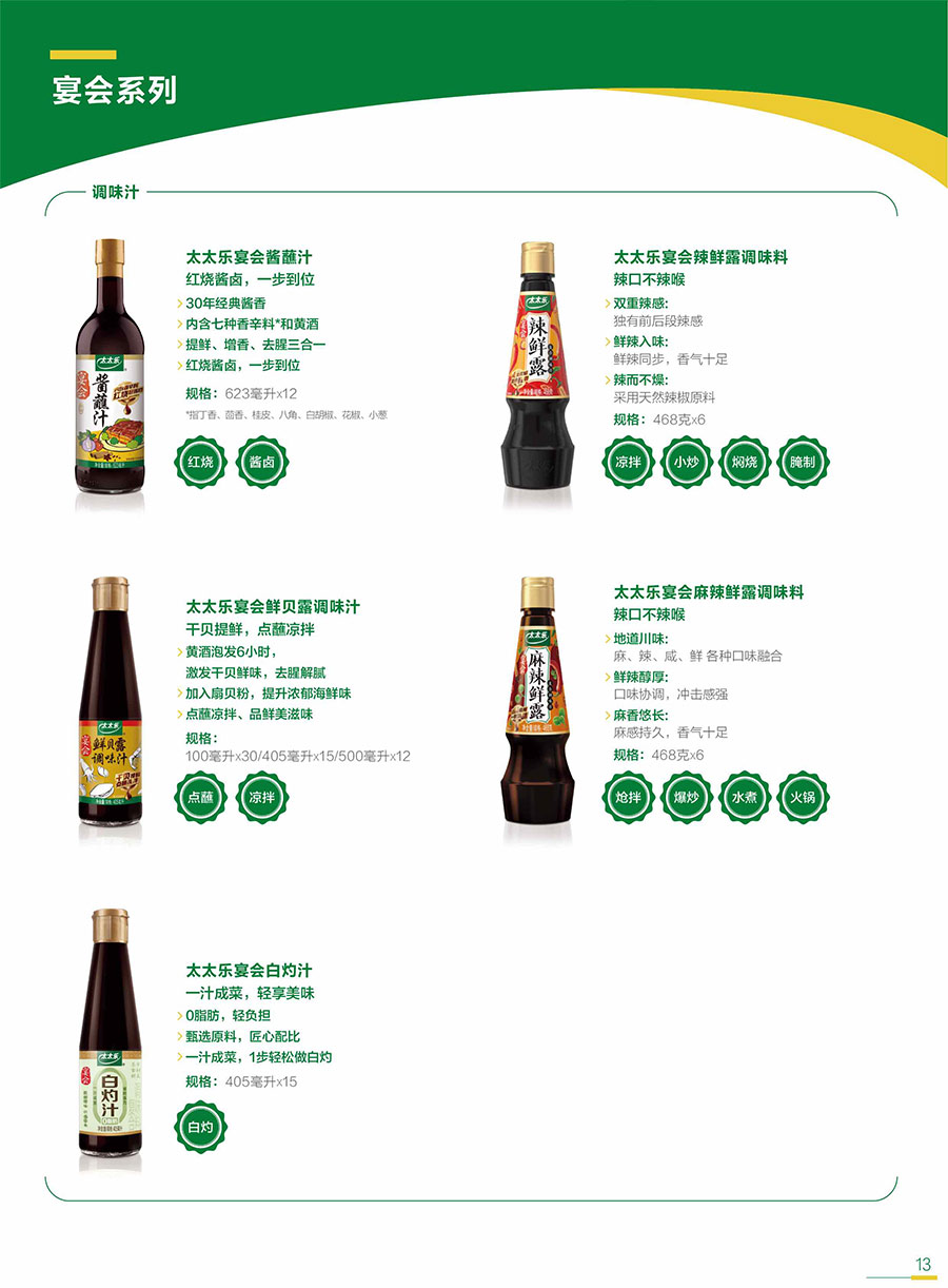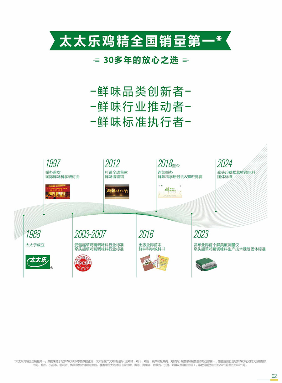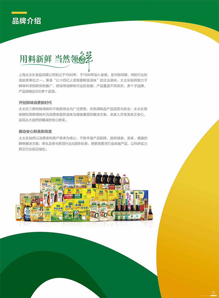太太樂始終以消費者和客戶需求為核心,不斷豐富產(chǎn)品矩陣,提供健康、美味、便捷的鮮味解決方案;牽頭及參與各項行業(yè)&團體標(biāo)準(zhǔn),用更高要求打造卓越產(chǎn)品,以科研實力捍衛(wèi)行業(yè)前沿地位。