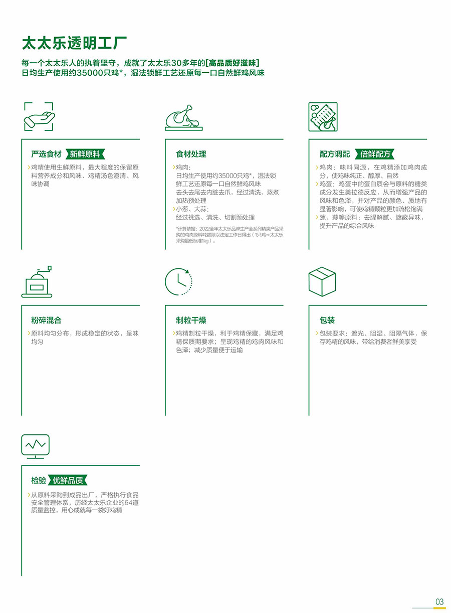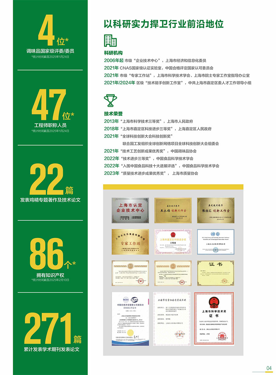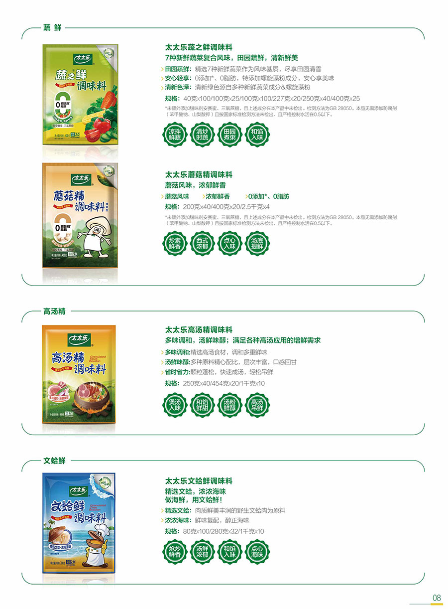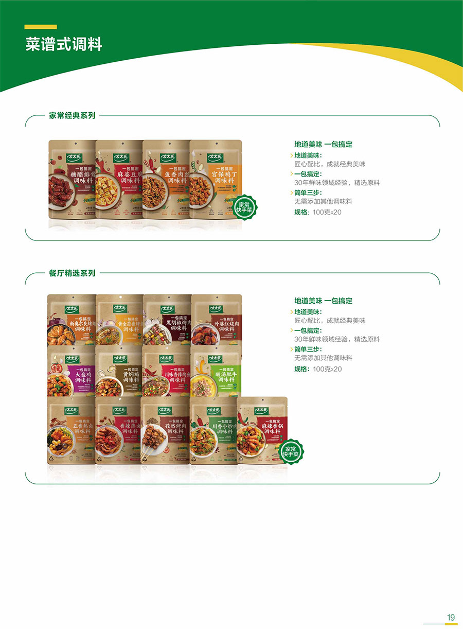太太樂始終以消費者和客戶需求為核心,不斷豐富產(chǎn)品矩陣,提供健康、美味、便捷的鮮味解決方案;牽頭及參與各項行業(yè)&團體標(biāo)準(zhǔn),用更高要求打造卓越產(chǎn)品,以科研實力捍衛(wèi)行業(yè)前沿地位。