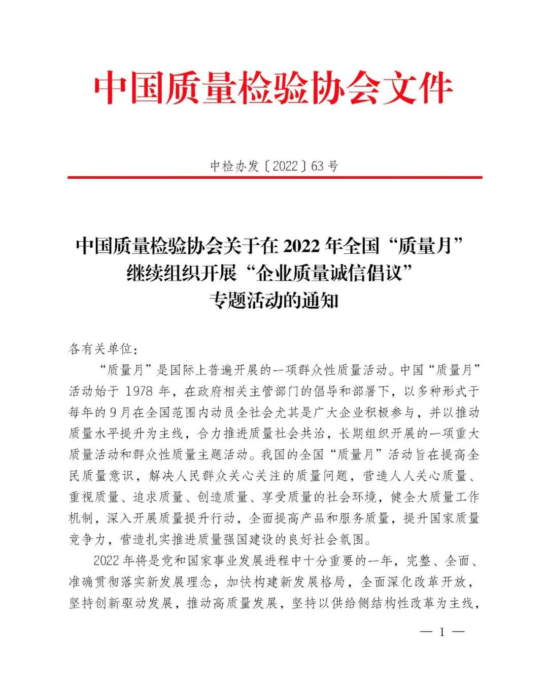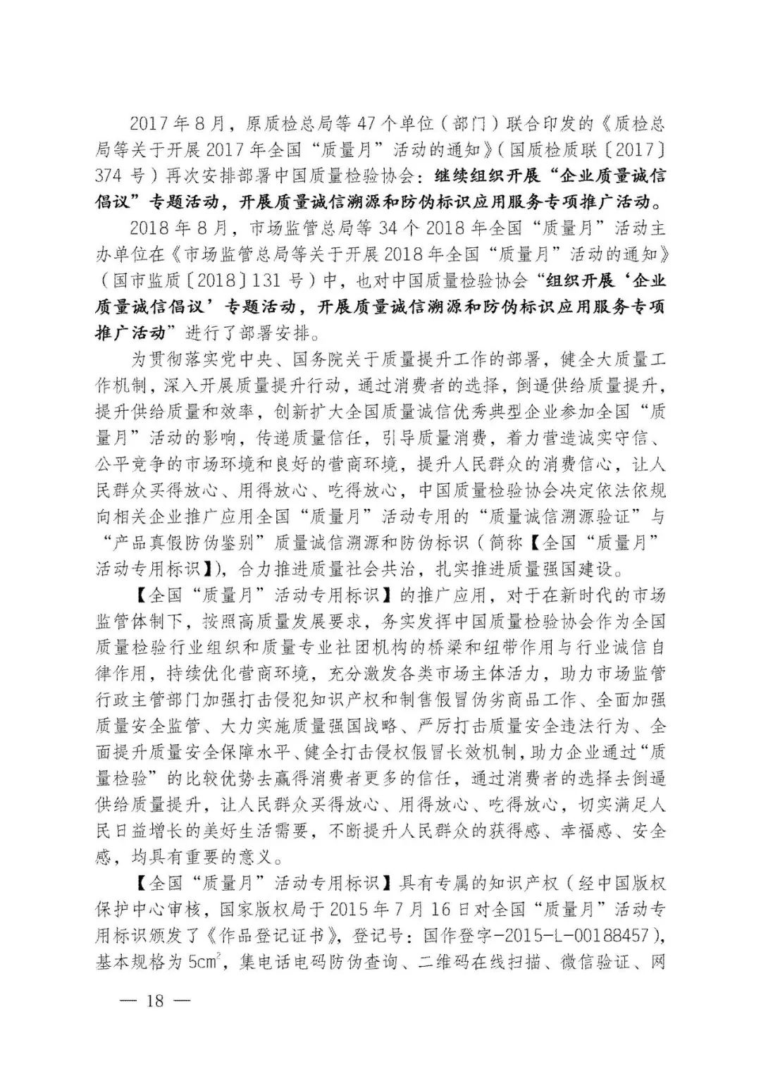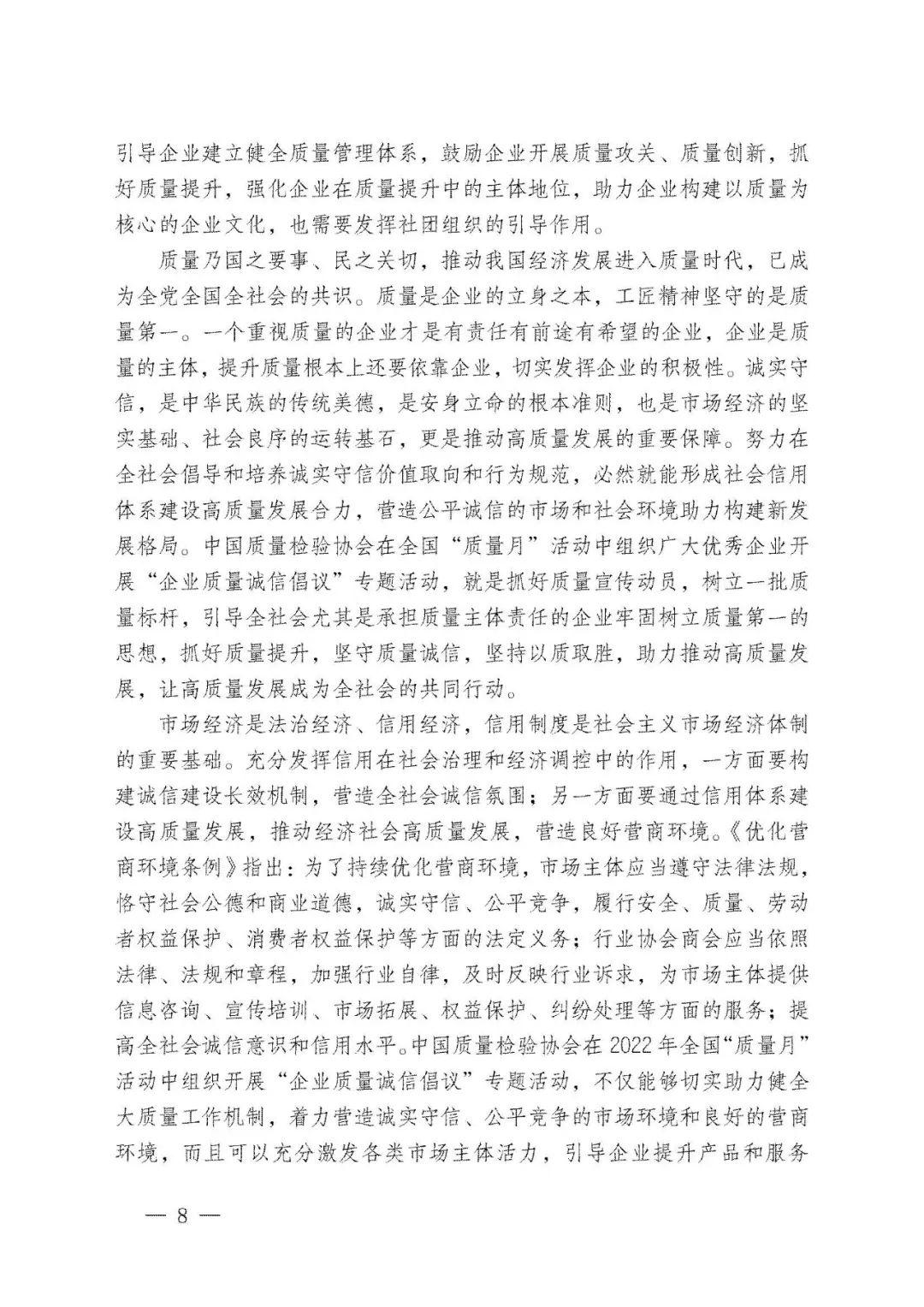 持續堅守,久久為功。45年來,全國“質量月”活動參與者上億人次,中國質量工作也歷經了“質量振興”“質量發展”及至當下“質量強國”的非凡歷程。中國質量檢驗協會作為始于1996年就參與全國“質量月”的親歷者,我們必將繼續努力舉辦好全國“質量月”企業質量誠信倡議專題活動,為助力擴大全國“質量月”活動在廣大企業中的影響力作出不可或缺的積極努力。