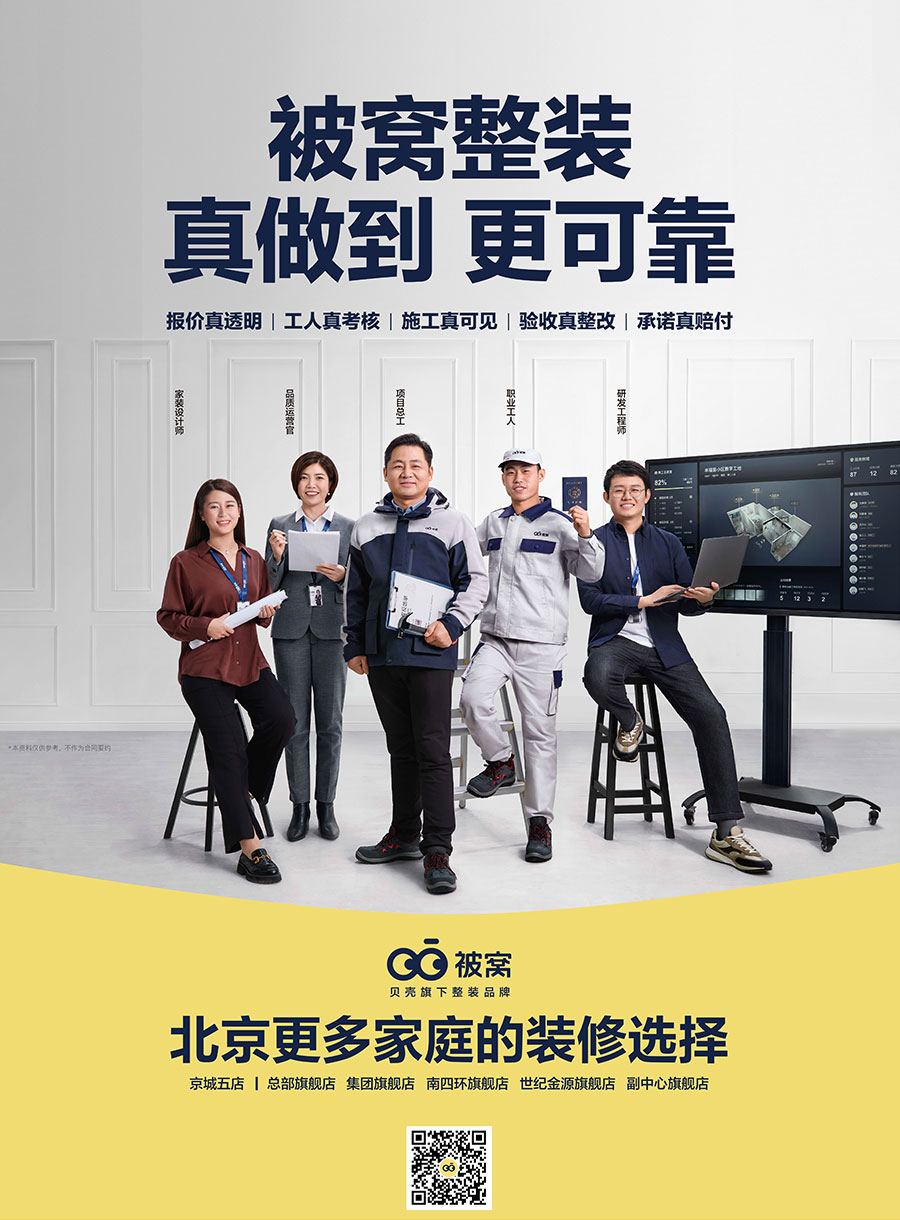 被窩,是貝殼旗下整裝品牌,成立于2016年,總部位于北京。以先進設計理念、科技透明體驗、標準化工藝,為客戶提供一站式省時省心的整體家裝服務。涵蓋設計、主輔材、施工、定制、家電、軟裝6大服務。