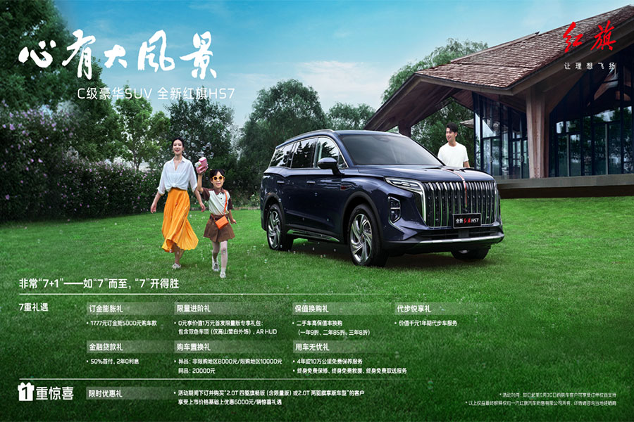 8月25日,“心有大風景——全新紅旗HS7上市發布會”在第二十六屆成都國際汽車展覽會舉行。紅旗品牌C級豪華SUV——全新紅旗HS7正式上市,官方指導價25.58萬~33.58萬元。
