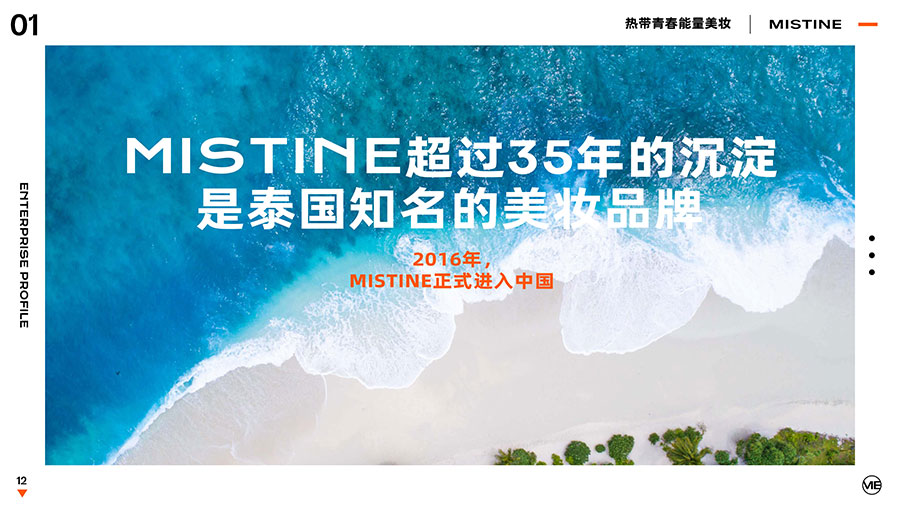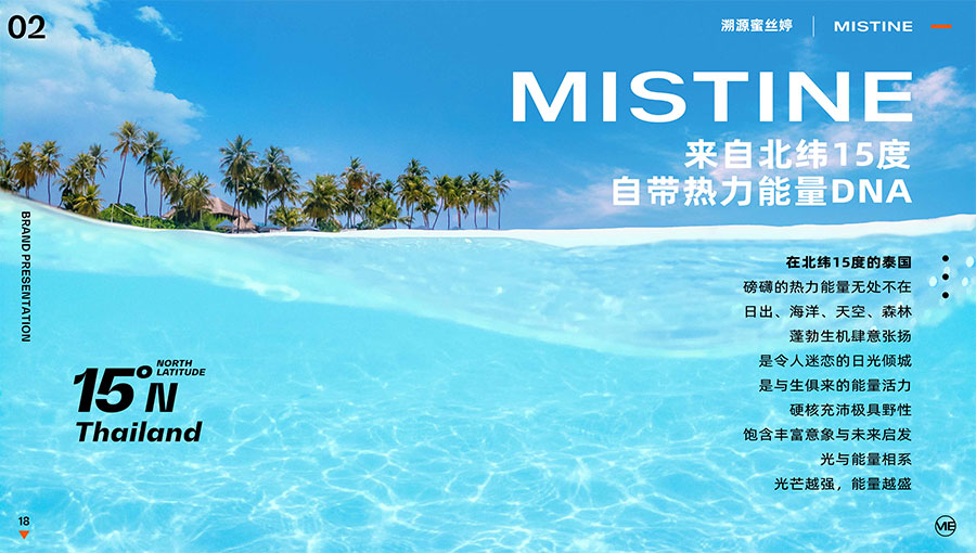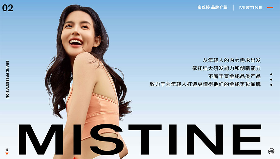 MISTINE蜜絲婷1988年始源于泰國,作為知名國際美妝品牌,擁有超過35年的科研底蘊,產(chǎn)品種類涵蓋防曬、美妝、護膚、香水、個護五大類,擁有近6000多個單品暢銷全球20多個國家,專注為全球女性提供豐富、安全、高品質(zhì)的美妝產(chǎn)品。自2016年進入中國后,MISTINE蜜絲婷以“熱帶青春能量美妝”為品牌定位,為年輕人打造更懂得他們的全新美妝產(chǎn)品,并傳遞獨特的健康活力生活方式。