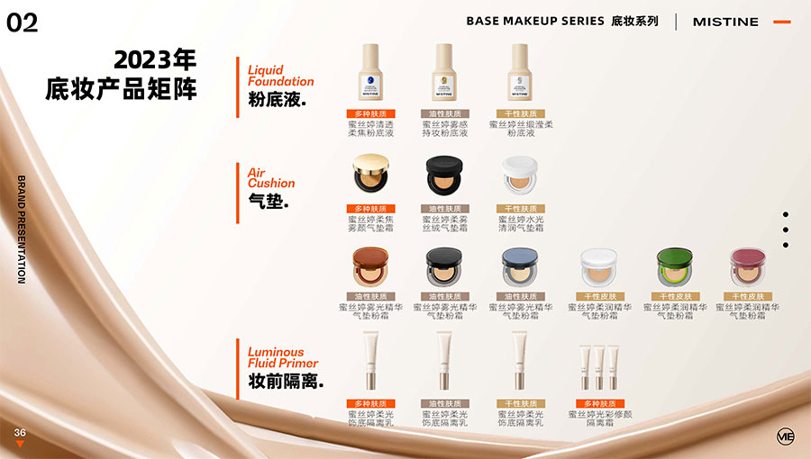 主要產(chǎn)品:MISTINE蜜絲婷防曬、美妝、底妝、彩妝、護膚、香水、個護等產(chǎn)品