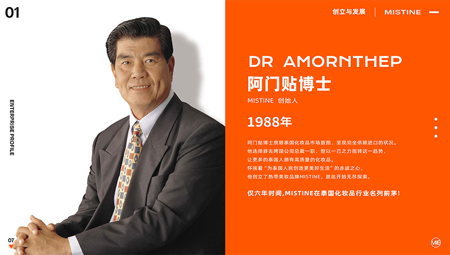 栢特薇(深圳)化妝品有限公司是專業(yè)從事化妝品研發(fā)、生產(chǎn)、運營、銷售等業(yè)務的多元化品牌公司,業(yè)務內(nèi)容覆蓋線上線下全渠道。旗下美妝品牌Mistine蜜絲婷,由阿門貼博士于1988年創(chuàng)立,秉承著“讓全球女性可以體驗更高品質(zhì)化妝品的初心”深耕彩妝護膚領域超35年,專業(yè)底蘊深厚。