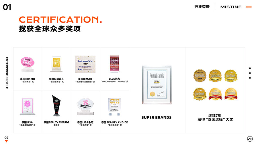 36年來,MISTINE蜜絲婷步履不停,堅持從消費者出發(fā),以優(yōu)質(zhì)專研產(chǎn)品、適時而動的渠道策略和持續(xù)發(fā)力的品牌塑造,贏得眾多消費者的喜愛和行業(yè)內(nèi)外的贊許。迄今,MISTINE蜜絲婷已連續(xù)七年攬獲“泰國選擇”大獎,同時先后榮獲中國化妝品大會藍玫獎「2022年度競爭力品牌」、IQF國際品質(zhì)節(jié)暨消費領導力峰會「杰出消費影響力品牌」、CAQI中國質(zhì)量網(wǎng)「全國美妝行業(yè)質(zhì)量領先品牌」、天貓金妝獎超級單品「年度防曬獎」、凱度消費者指數(shù)「極具成長力品牌」等榮譽。
