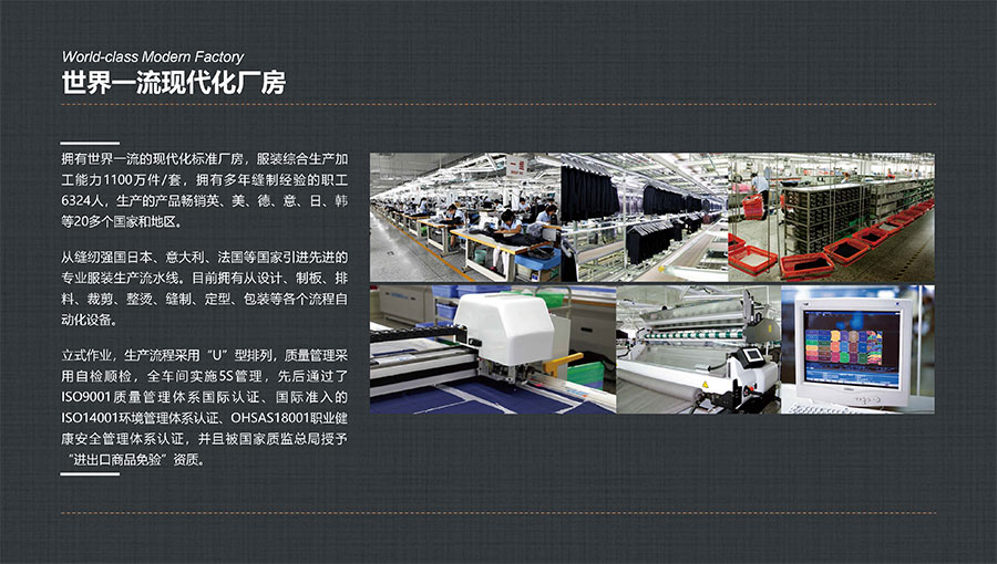 多年來,大楊集團深耕主業、堅守實業,積極開拓國內外高端服裝市場,年服裝綜合生產加工能力1100萬件/套,其中年定制服裝生產數量穩居全球第一。年西服出口量600萬件/套,連續多年排名全國第一。先后被評為世界服裝行業五百強企業、全國服裝行業十強/百強企業、國家重點扶持的中國名牌出口企業、國家級重合同守信譽單位、國家級服務型制造示范企業、國家重點培育紡織服裝百家品牌、遼寧省數字化轉型標桿企業,榮獲全國五一勞動獎狀、全國文明單位、全國紡織行業先進集體、全國抗擊新冠肺炎疫情先進民營企業、省長質量獎等稱號,入選“中國服裝智能制造技術創新戰略聯盟”創始會員。同時,大楊集團還在同行業中率先通過“AAA級兩化融合管理體系”評定,以及ISO9001質量管理體系國際認證、國際準入的ISO14001環境管理體系認證、ISO45001職業健康安全管理體系認證。