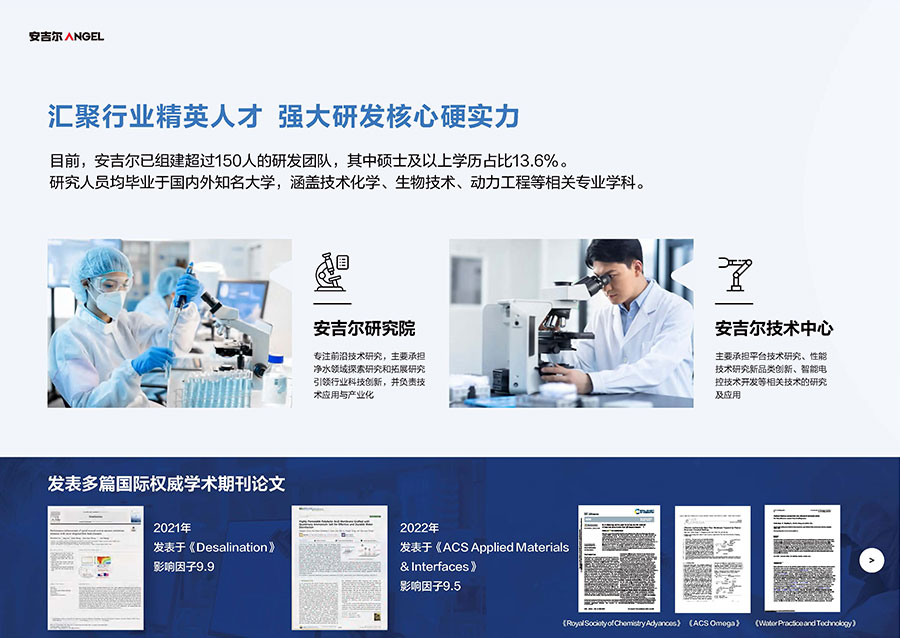 37年來,安吉爾始終堅持科技創新,不斷引領行業技術升級。參與17項國家及行業標準制修訂,累計獲得900余項專利,建立4大水質實驗室。2023年,安吉爾憑實力斬獲全球9項發明獎,包含3項日內瓦國際發明展獎項,6項亞洲創新發明展獎項。