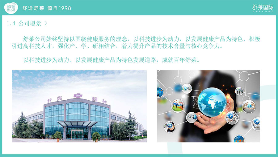 舒萊堅持以科技進步為動力、以發(fā)展健康產品為特色發(fā)展道路,幾年來,技術中心先后與南京野生植物院、中國抗菌協(xié)會建立合作關系,走產學研結合之路,大力發(fā)展高科技產品。