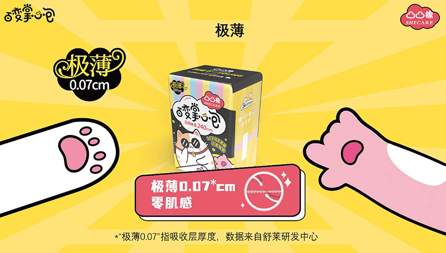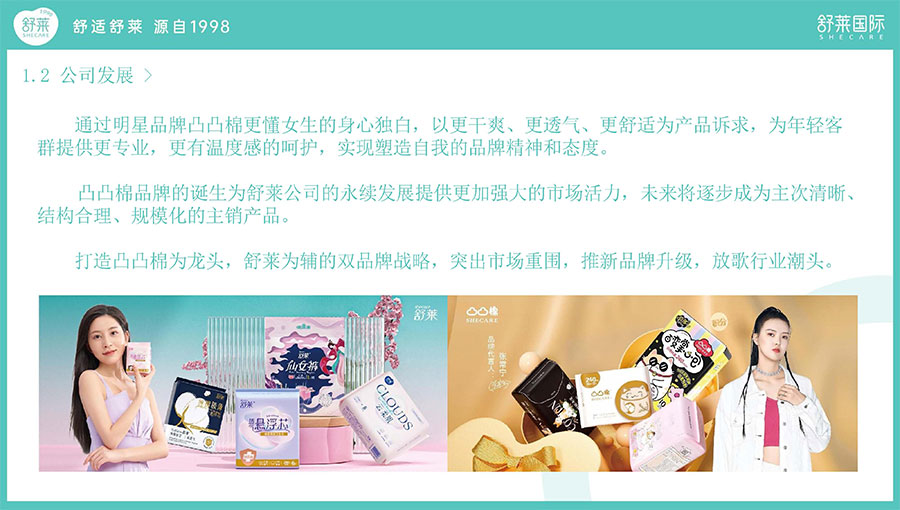 主要產品:舒萊、凸凸棉衛(wèi)生巾、衛(wèi)生護墊、安睡褲(女性衛(wèi)生褲)
