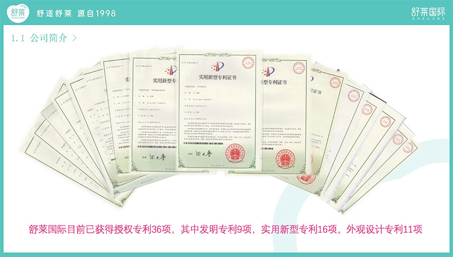 舒萊,一個女性朋友熟知的國貨品牌,26年來一直在襄城縣默默“發(fā)育”。目前舒萊公司擁有12條現(xiàn)代化全自動生產線,不斷地通過產品研發(fā)和技術創(chuàng)新,取得了輝煌業(yè)績。截至2024年7月1日共有專利36個,擁有9項發(fā)明專利,13項實用新型專利,10項外觀設計專利,衛(wèi)生巾年生產能力達66億片,被認定為“國家級高新技術企業(yè)”“省級抗菌婦女衛(wèi)生用品工程技術研究中心”“中國女性衛(wèi)生用品行業(yè)十強企業(yè)”,已成為國內衛(wèi)生巾生產領域領軍企業(yè)。