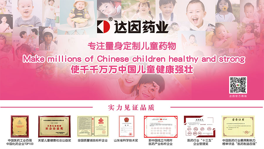 山東達因海洋生物制藥股份有限公司(簡稱達因藥業),以“使千千萬萬中國兒童健康強壯”為使命,專注于兒童健康領域產品研發、生產和市場營銷,以專業和責任捍衛兒童用藥安全,在兒科專業用藥領域取得了良好的口碑和覆蓋率,樹立了中國兒童用藥的旗幟地位。達因藥業產品線涉及兒童藥品、兒童保健食品和兒童營養食品、兒童健康用品等領域,形成了以“兒童保健和治療”領域為核心的兒童健康產業布局。