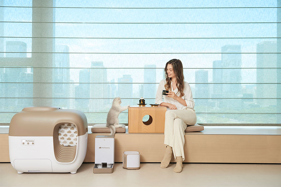 主要產品:PetSnowy糯雪智能全自動貓砂盆、烘干箱、智能飲水機、智能喂食器、空氣凈化器、儲糧桶等多品類寵物智能用品