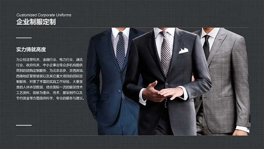凱門品牌(KEYYMEN):高級職業(yè)裝品牌,企業(yè)形象定制專家。以精湛工藝及最優(yōu)性價(jià)比打造高品質(zhì)、個(gè)性時(shí)尚的企業(yè)形象,專屬于那些為理想、為事業(yè)打拼,并在成功過程中享受生活的職場團(tuán)隊(duì)及精英人士。