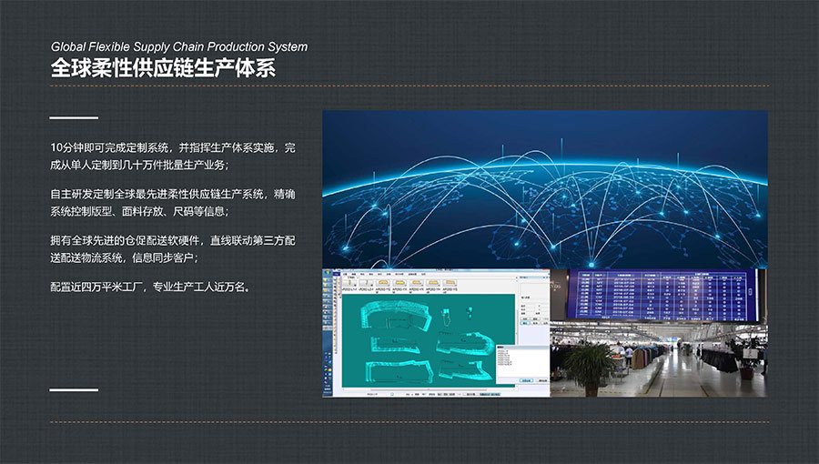 大楊集團(tuán)堅(jiān)持以“打造世界最強(qiáng)服裝定制平臺(tái)”為目標(biāo),重點(diǎn)打造數(shù)字化柔性智能定制工廠,以自主開發(fā)的Ustyylit(優(yōu)思達(dá))服裝定制工業(yè)互聯(lián)網(wǎng)平臺(tái)為依托,以生產(chǎn)線的數(shù)字化改造為手段,實(shí)現(xiàn)多品種、小批量、高品質(zhì)、快速反應(yīng)的定制化生產(chǎn)模式。大楊集團(tuán)現(xiàn)已擁有7家智能化生產(chǎn)工廠、40條智能化生產(chǎn)線。其中,自主研發(fā)的“智能懸掛式高速分揀與存儲(chǔ)系統(tǒng)”榮獲“中國服裝行業(yè)科技進(jìn)步獎(jiǎng)一等獎(jiǎng)”。同時(shí),“支持深度定制與即時(shí)體驗(yàn)的服裝行業(yè)工業(yè)互聯(lián)網(wǎng)平臺(tái)”項(xiàng)目,入選工信部2020年度新型信息消費(fèi)示范項(xiàng)目,以及2022年工業(yè)互聯(lián)網(wǎng)平臺(tái)創(chuàng)新領(lǐng)航應(yīng)用案例,被授予中國紡織行業(yè)數(shù)字化轉(zhuǎn)型勞動(dòng)競賽先進(jìn)單位。
