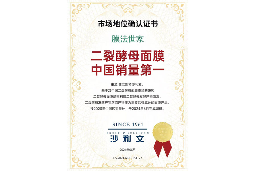 主要產品:膜法世家逆時空二裂酵母彈潤緊致黑面膜、膜法世家逆時空二裂酵母彈潤淡紋黑面膜、膜法世家紫草泥清潔面膜、膜法世家綠豆清潔泥膜(經典版)、膜法世家綠豆清潔泥膜(祛痘版)、二裂酵母彈潤緊致精華液
