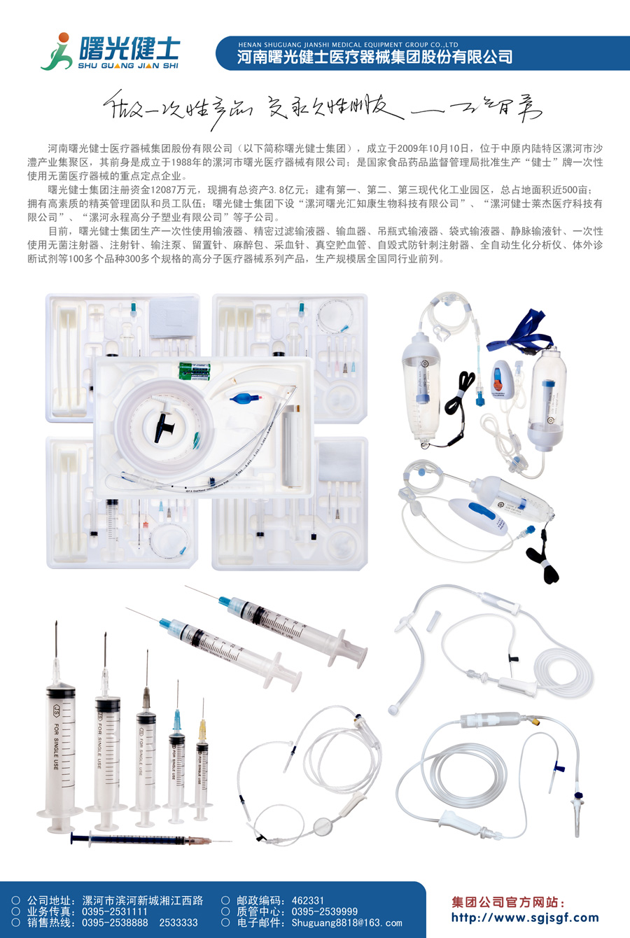 主要產品:健士牌一次性使用無菌輸液器、一次性使用無菌注射器