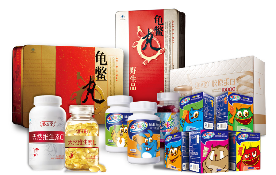 主要產(chǎn)品:養(yǎng)生堂牌天然維生素E軟膠囊、天然維生素C咀嚼片、膠原蛋白粉固體飲料,成長快樂牌復(fù)合維生素咀嚼片、復(fù)合維生素軟片、混合膠型凝膠糖果、維生素AD滴劑(膠囊型),養(yǎng)生堂蜂王漿蜂膠軟膠囊,養(yǎng)生堂牌天然β-胡蘿卜素軟膠囊,養(yǎng)生堂牌多種維生素礦物質(zhì)片等