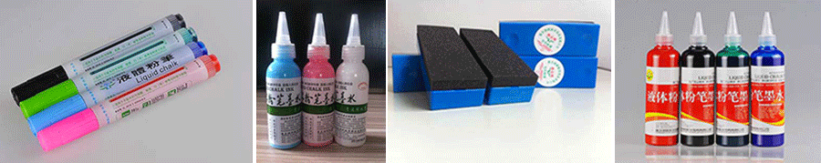 煜輝主要產品——液體粉筆及環保可擦墨水。煜輝公司為中國3000萬教師和4億學生健康著想,立志于解決傳統粉筆粉塵污染問題,決定開發液體粉筆,還給廣大師生一個健康潔凈的學習環境。2003年—2008年,經過努力,彩色液體粉筆終于成功問世。該產品共有黑色、紅色、藍色、綠色四種顏色。液體粉筆墨水灌裝在筆內,在米黃色教學板上書寫,字跡清晰,顏色多樣化能滿足教學質量;書寫流暢,摩擦力小,減少教師板書疲勞;擦拭無塵,能讓教師輕松愉快地講解,提高教學質量。煜輝公司生產的彩色液體粉筆,使用前學校只需投入很少的資金,在不改變原有教學板性質的情況下簡單改造黑板,就可以正常使用該產品。這樣就降低學校的使用成本,為煜輝產品迅速進入市場創造了有利條件。