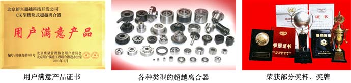 CK型超越離合器2002年榮獲中國(guó)機(jī)械通用零部件行業(yè)新產(chǎn)品“優(yōu)秀獎(jiǎng)”;2003年中國(guó)質(zhì)量檢驗(yàn)協(xié)會(huì)列為“全國(guó)質(zhì)量信得過(guò)產(chǎn)品”;2004年5月隨中國(guó)發(fā)明協(xié)會(huì)參展團(tuán)去法國(guó)參加“第95屆巴黎國(guó)際發(fā)明展覽會(huì)”,榮獲“列賓國(guó)際發(fā)明獎(jiǎng)”;同年10月去韓國(guó)漢城參加“2004年國(guó)際發(fā)明大會(huì)”,榮獲“金獎(jiǎng)”;2005年9月在北京參加“第十五屆全國(guó)發(fā)明展覽會(huì)”,榮獲精品“金獎(jiǎng)”。2004年完成超越離合器產(chǎn)值480萬(wàn),銷(xiāo)售額460萬(wàn)元。