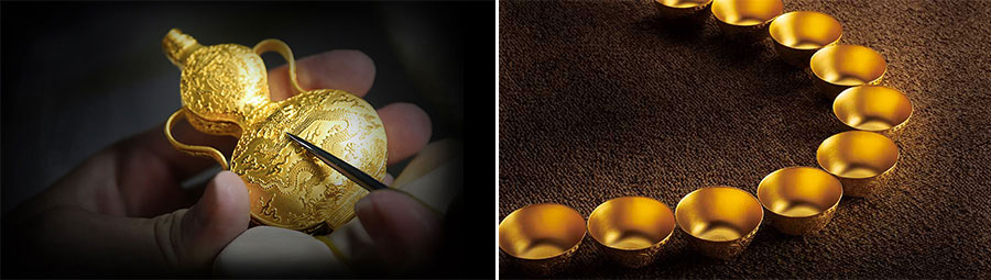 國金黃金自涉足藝術(shù)黃金領(lǐng)域之初就努力踐行“非凡技藝、完美品質(zhì)”的產(chǎn)品理念,以客戶體驗(yàn)為中心圍繞傳承和使用理念設(shè)計(jì)和策劃產(chǎn)品。逐步建成了以傳家系列、平安系列、婚慶系列、生肖系列及國金定制五大系列組成的產(chǎn)品細(xì)分體系。其中,從文化層面包含了酒文化、茶文化、福文化、佛文化、喜文化、生肖文化、節(jié)慶文化、紀(jì)念文化等題材;從功能上又包含了食器、酒器、茶器、福器、玩器、合器等實(shí)用器型,能滿足各類客戶的多元化需求。此外,擁有眾多專業(yè)設(shè)計(jì)人才的國金定制顧問團(tuán)隊(duì),又能為個(gè)人客戶和企業(yè)客戶提供一對(duì)一的專業(yè)定制服務(wù),幫助每一位客戶實(shí)現(xiàn)黃金夢(mèng)想,造就品質(zhì)生活。