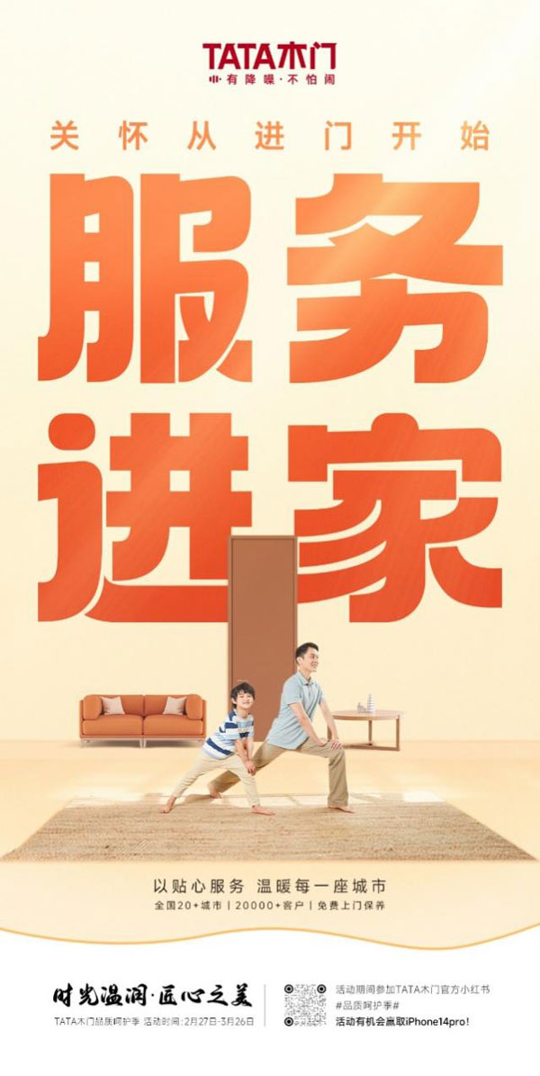 與此同時,TATA木門延續了往年的服務月活動,特別為全國20多座城市,20000多位用戶提供免費上門保養服務,用實際行動傳遞著品牌的溫度。除此之外,為回饋新老用戶,TATA木門推出木門放心購活動,以超值的價格全新讓利于消費者,打通全平臺銷售通道,讓消費者能夠以最值的價格獲得最優質的品質和服務。