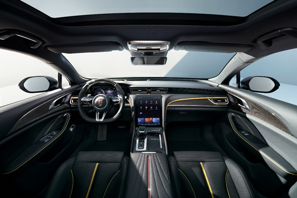 在內飾設計方面,紅旗H6以“環懸科技”概念,采用流動輕盈的整體架構,為駕乘者帶來尊貴體驗。超大中控豎屏、“金盞黃+黑色”內飾、“真皮+碳纖維”方向盤、運動座椅、全液晶儀表盤、精致簡潔的門板和飾條設計,在傳承家族“中軸式布局”的基礎上,呈現出兼具豪華尊享、智慧科技、激情動感的風尚氣息。