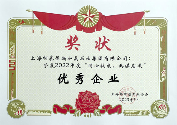 柯賽德斯加美石油集團(tuán)被授予“2022年度‘同心抗疫,共謀發(fā)展’優(yōu)秀企業(yè)”稱號