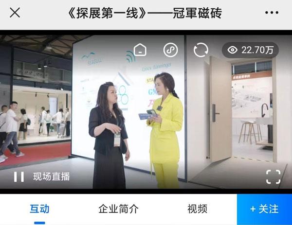 線上經(jīng)濟時代,新媒體平臺各行其道,借此展會契機,冠軍磁磚攜手騰訊家居|貝殼頻道開展“探展第一線”線上直播活動,由設計好物·主理人、騰訊家居|貝殼頻道總裁 張英梅(YOYO)傾情出鏡,冠軍磁磚巖板中心副總經(jīng)理 唐小敏親自上陣。騰訊家居|貝殼平臺直播,“智造聯(lián)盟”、“冠軍磁磚官方”等賬號平臺同步轉(zhuǎn)播,截止直播結(jié)束,線上觀看量超230000人次。從展位帶逛、巖板應用區(qū)展示到冠軍巖板優(yōu)勢分析解讀及品牌戰(zhàn)略布局,帶線上觀眾沉浸式觀展,直播間實時粉絲互動,線上氣氛火熱。