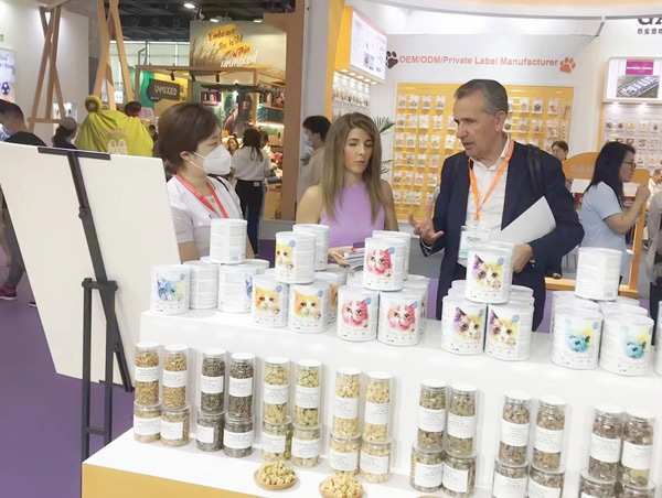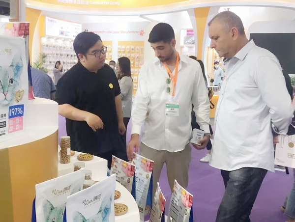 展會現場,來賓絡繹不絕,吸引了不少來自國內外的消費者、供應商,銷售人員不斷與客戶溝通、交流、探討。來自深圳的小張表示:“自家貓咪最喜歡朗諾棒棒糖,這次特意從深圳趕來參展。這次最驚喜的是凍干雪糕,沒想到小貓咪也有專屬雪糕,一定要買回去讓主子嘗嘗。”從香港趕來的米妮是摯味全價凍干貓糧的“粉絲”,這次特意來“面基”,找到朗諾展位的那一刻,就像多年好友重逢,倍感親切。