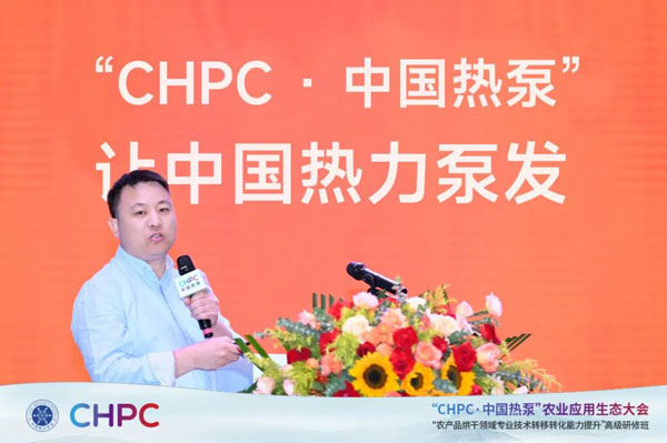 會議現場,中廣電器集團熱泵研發部經理朱伯永為現場與會嘉賓帶來《空氣源熱泵烘干關鍵技術及應用解析》的主題分享,結合具體應用案例分析目前行業存在痛點難點問題,為行業在農產品的調制加工過程中提質增收,給出了有效的解決方案和應用建議。
