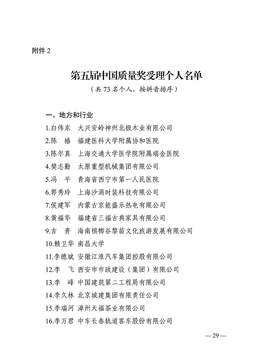 第五屆中國質量獎受理名單公示(附全名單)