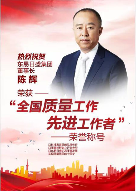 熱烈祝賀東易日盛集團董事長陳輝榮獲“全國質量工作先進工作者”榮譽稱號