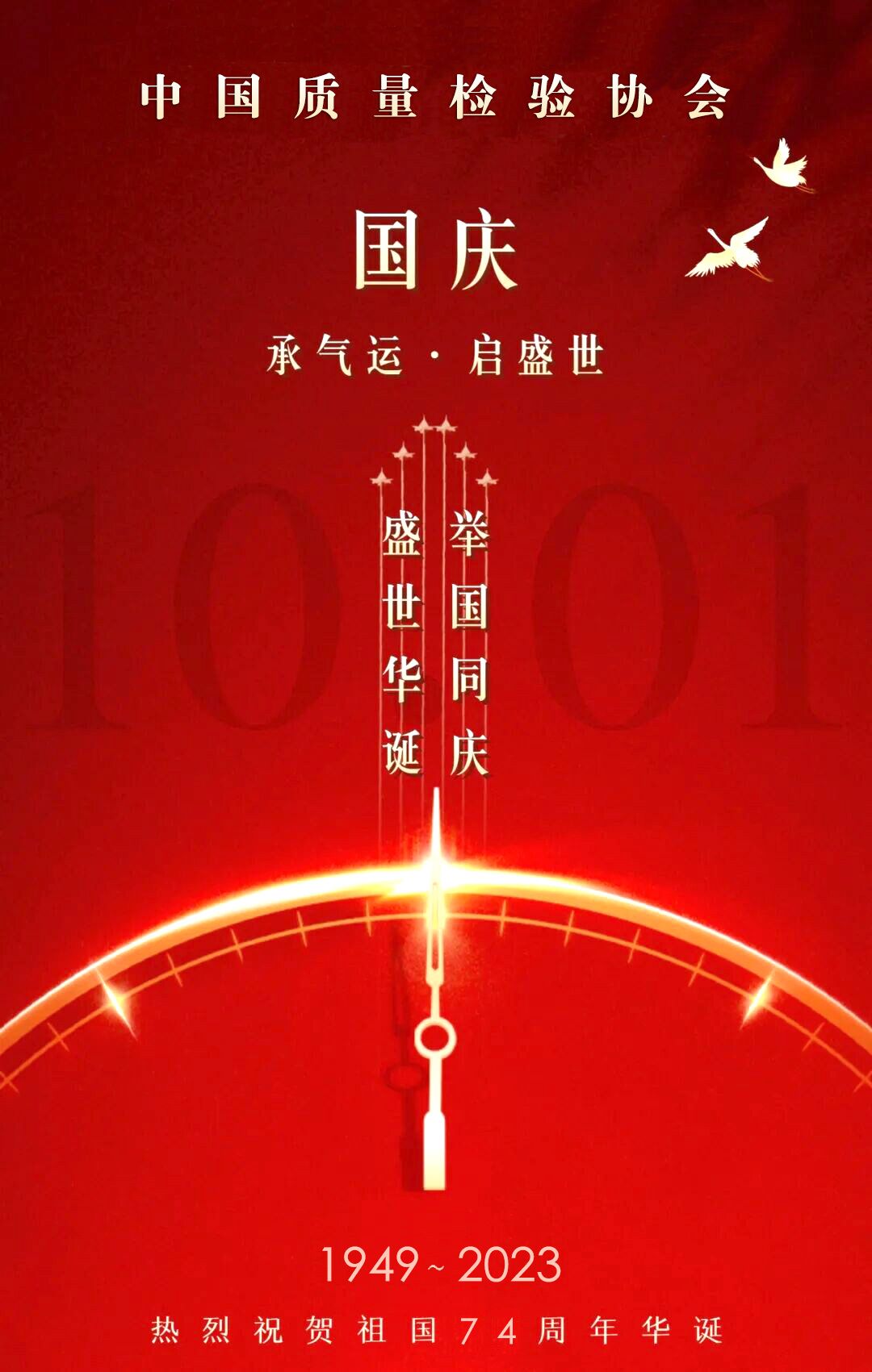 山河披錦繡,盛世寫華章。2023年10月1日,我們迎來中華人民共和國成立74歲華誕。中國質量檢驗協會謹此攜全體會員誠摯祝福偉大的中華人民共和國:生日快樂!