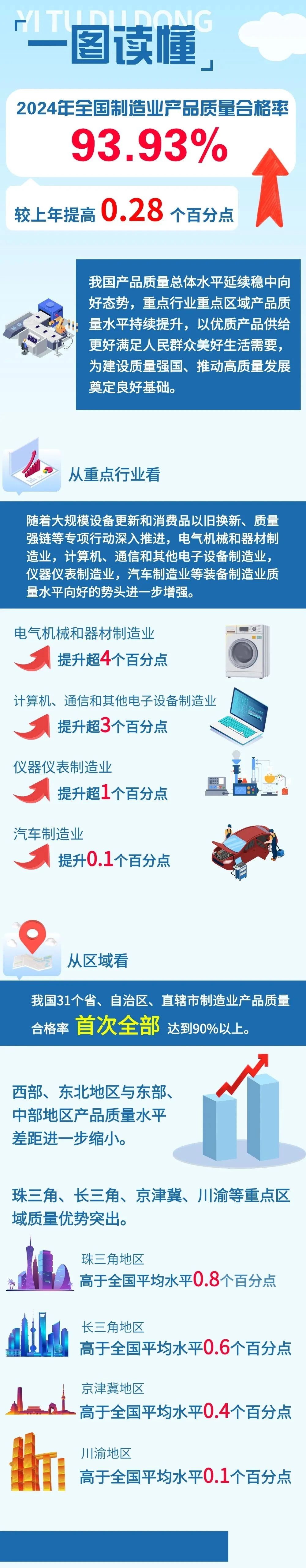 2024年全國制造業產品質量合格率達到93.93%